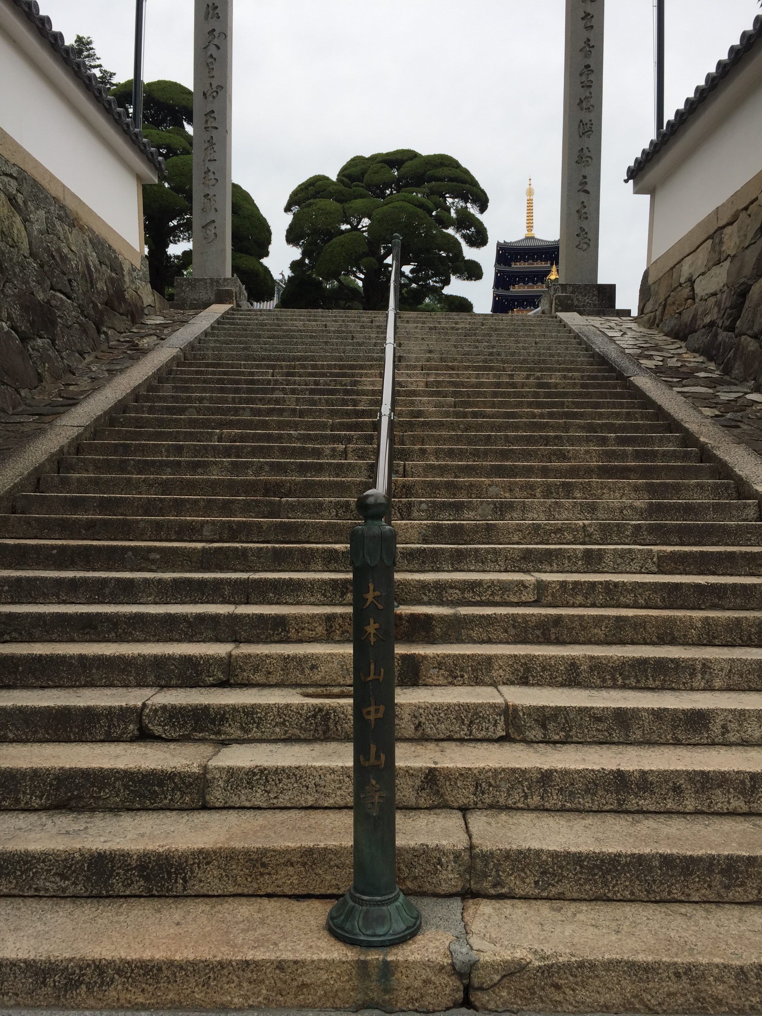 石畳を上がっていくと中山寺の本堂に続く長い階段が見えます。